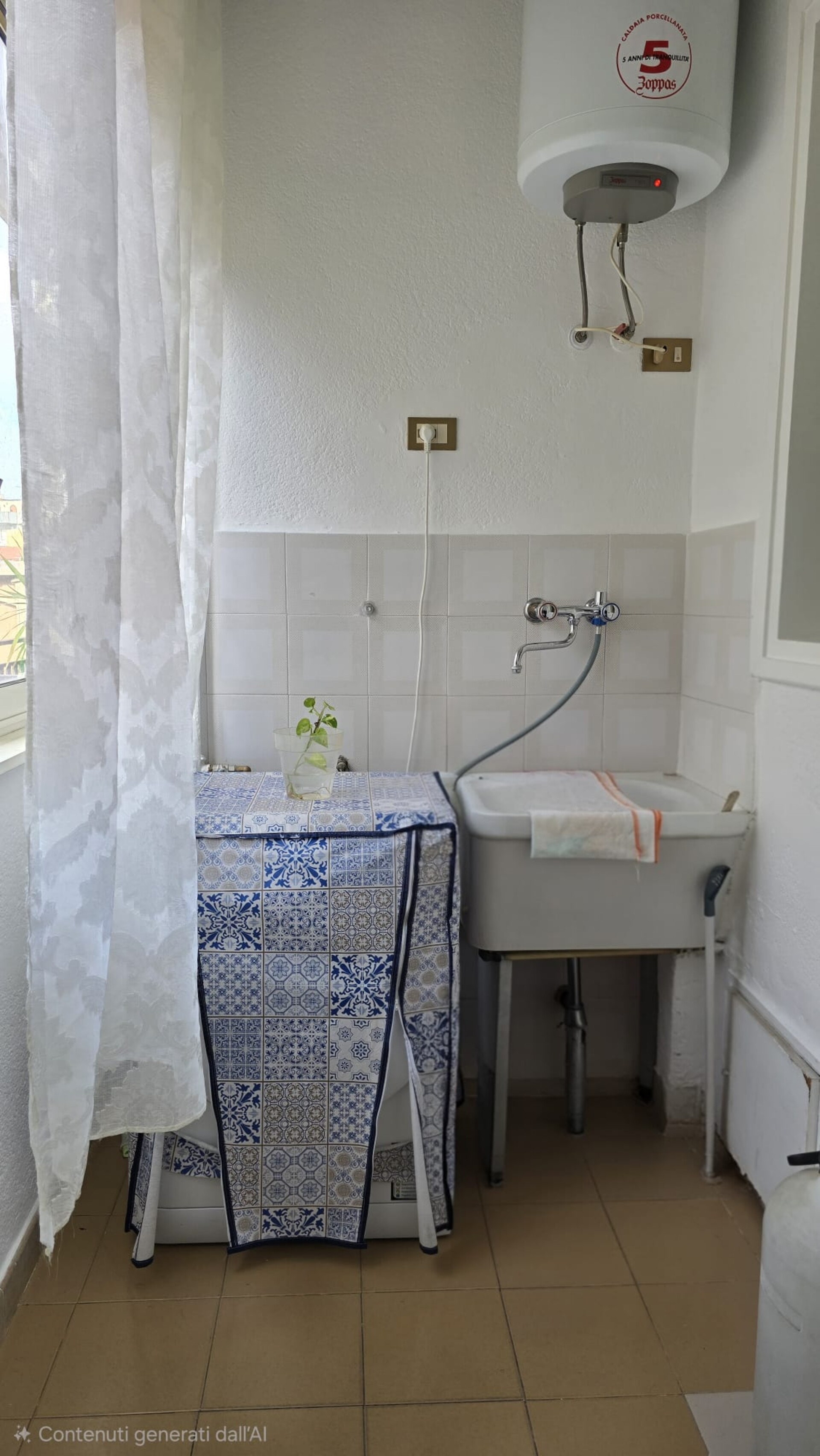 · Cucina abitabile con accesso a un balconcino verandato adibito a lavanderia.